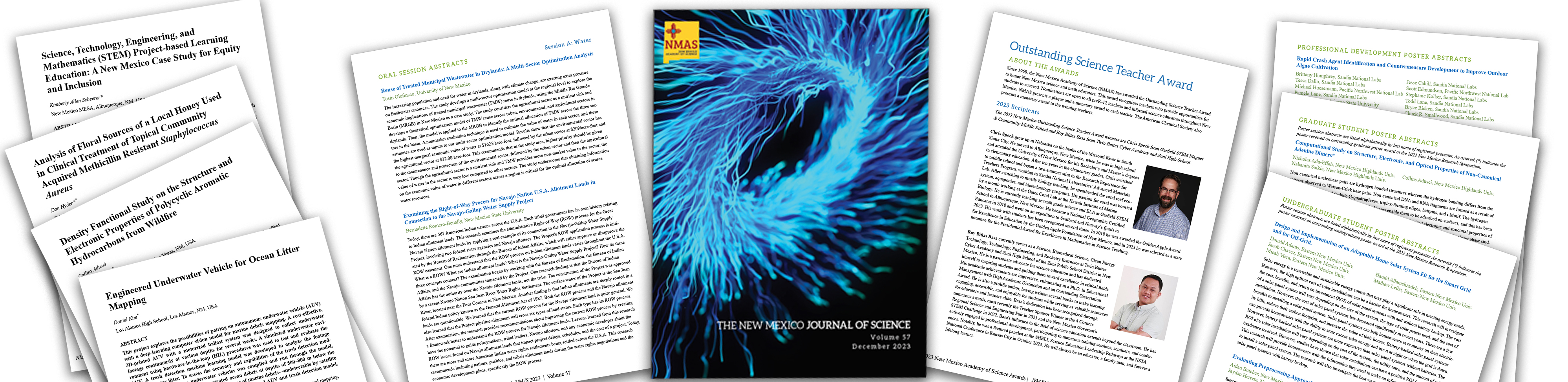 The New Mexico Journal of Science (NMJS) is the annual publication of the New Mexico Academy of Science (NMAS). Each volume of the NMJS, which has been published since 1960, contains research papers and review articles deemed of interest to the scientists, educators, and citizens of New Mexico, in addition to some highlights of the academy’s activities from the past year. Some volumes address topics of historical, social, or economic interest, while others emphasize scientific areas in which New Mexico is particularly active.