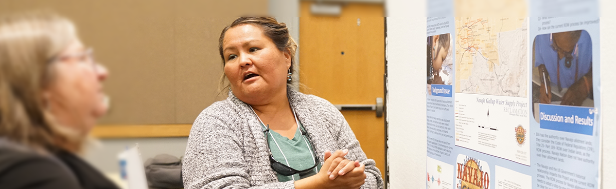 Researcher explaining her results during the poster session of the 2023 New Mexico Research Symposium